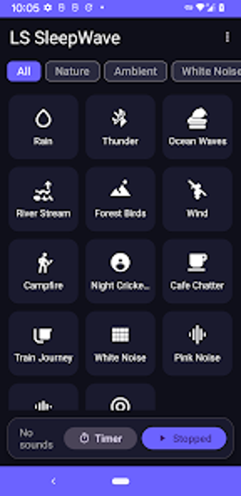 O LS SleepWave é um misturador de sons ambientes projetado para criar a atmosfera perfeita para dormir, estudar, trabalhar ou relaxar. Com 14 sons de alta qualidade divididos em três categorias — Natureza, Ambiente e Ruído — o aplicativo permite que os usuários ajustem volumes individuais e misturem sons simultaneamente, proporcionando uma experiência sonora personalizada. Além disso, conta com um filtro de categorias para facilitar a navegação e um timer de sono que interrompe a reprodução automaticamente após um período definido.
